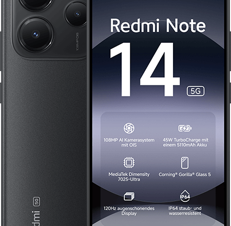 PremiumSIM Allnet Flat 20 GB + Xiaomi Redmi Note 14 5G Midnight Black – 16,99 EUR monatlich