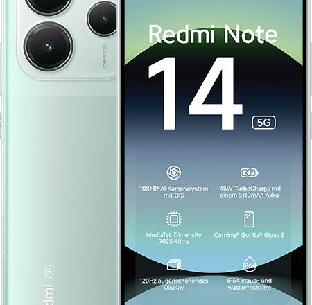 PremiumSIM Allnet Flat 20 GB + Xiaomi Redmi Note 14 5G Coral Green – 16,99 EUR monatlich