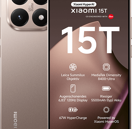 PremiumSIM Allnet Flat 20 + 10 GB + Xiaomi 15T Pro Mocha Gold – 34,99 EUR monatlich